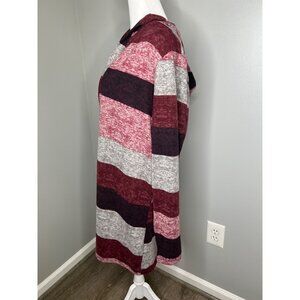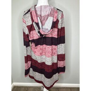 True Self Striped Hooded Knit Cardigan Sweater In Red & Gray XL