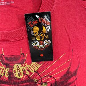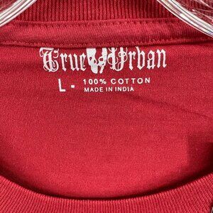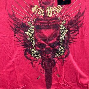 True Urban Mens Shirt Large Red 100% Cotton Short Sleeve Pullover Skull NWT