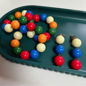 True Vintage 1960s Mod Round Chunky Rainbow Bead 5 Piece Bracelet Clip Earrings