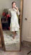 True Vintage 1980s Ivory lace and satin ruffle tiered wedding dress w large bow.