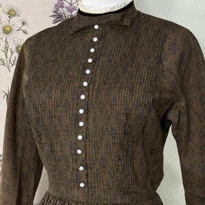 True Vintage 50s Brown Floral A-Line Dress Cottage Prairie Mori Kei Forest XS