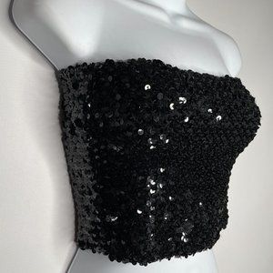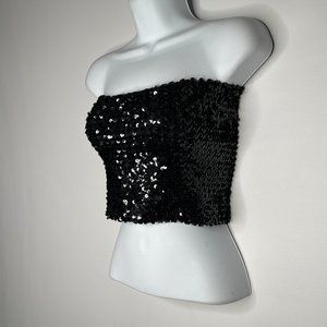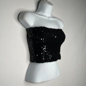 True Vintage 70s Disco Toppettes by A Brod Black Sequin Tube Top