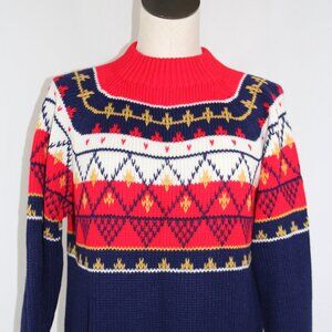 True Vintage 70s JC Penney Knit Pattern Sweater Red Navy Size Small Ski Winter