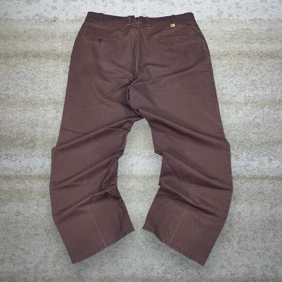 True Vintage Work n Sport Khakis Pants Chocolate Brown Baggy Wide Leg Fit Flat Front 70s