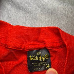 This True Vintage 80s Francesco Rinaldi As I Got Older Italian Promo Shirt in size Medium is a unique find for those who appreciate retro fashion. Made of cotton with a Crew Neck and Short Sleeves, this red shirt features a graphic print of a character named Stitch. Perfect for fans of comedy and 80s themes, this shirt is Machine Washable and was manufactured in the United States during that era. The regular fit and vintage design make it a standout addition to any man's wardrobe, ideal for wearing during the summer, fall, or spring seasons.