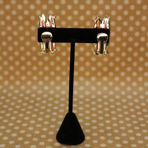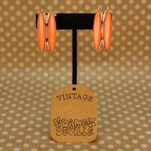 True Vintage Salmon Orange Oval on Gold toned Metal Clip Ons