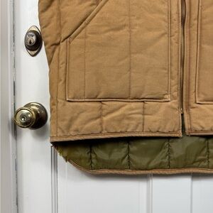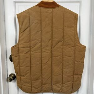 True vintage vest. Durablee canvas material comparable to the feel of a Carhartt jacket. See photos for any signs of wear. Sizing estimated XL to XXL. 27” from shoulder to bottom of front hem.