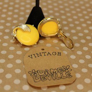 True Vintage Yellow Dot Gold Leaf Accent Clip On Earrings 1950-80s