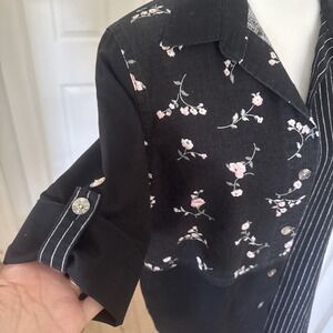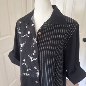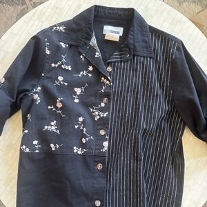 I am in love with this oversized button up tunic link long line vintage shirt! It has floral it has stripes. It has roll tab sleeves. It's got everything! And a wealthy estate find in good condition and smoke-free! Measurements are in photos.
