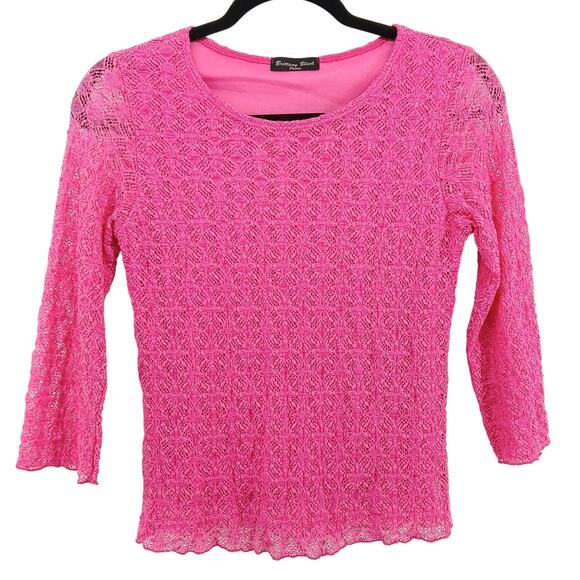 True Y2K Britney Black Pink Sheer Lace 3/4 Sleeve Top Petite SM Coquette Fairy