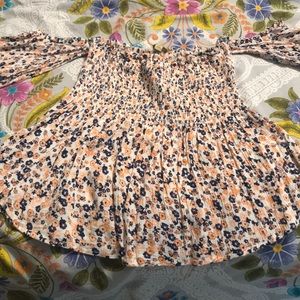 Off the shoulder with sleeves blouse. Has rucched area on chest and flows at bottom. Super cute