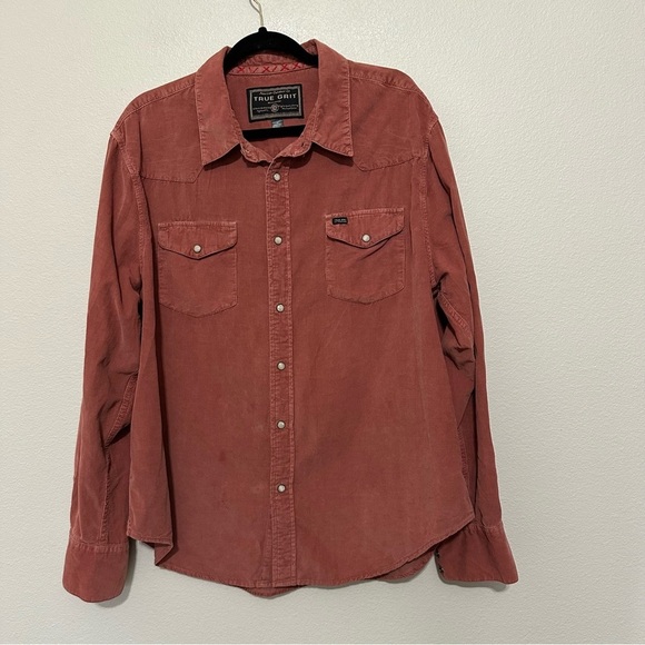 True grit men’s snap button corduroy dress shirt pink clay M medium Sundance