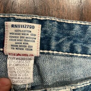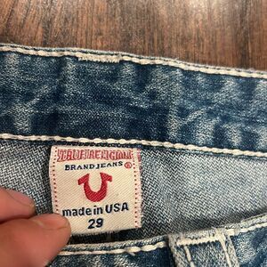 True religion Bobby jeans size 29 by 31 distressed made in USA raw hem in GUC
