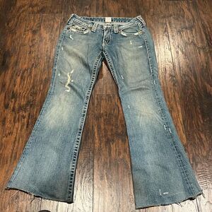 True religion Bobby big T jeans size 29 by 31 distressed made in USA raw hem in GUC