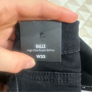 Step up your style with the Halle High Rise Super Skinny Jean. These sleek black jeans feature a high-rise waist and a figure-hugging super skinny fit. The standout detail? Pink single needle stitching that adds a bold pop of color.