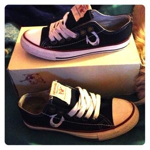 Lightly worn cute converse style true religion sneakers . Will clean more before ship comes with box but no box top