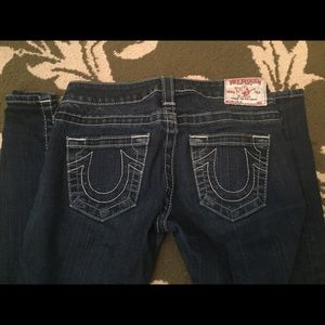 True religion blue jeans with white stitching size 25 barely worn great condition!