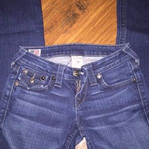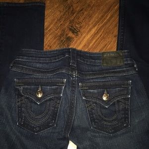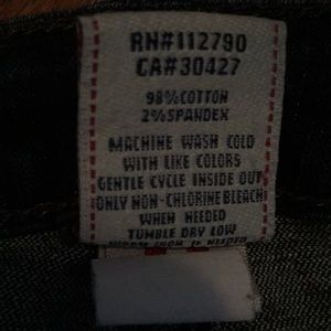 Good condition, these are straight legged, dark wash, low rise, they say 2% spandex but they have a lot of stretch to them inseam 33