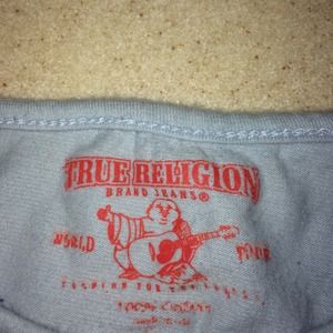 Blue true religion shirt , worn a couple of times , no stains, holes or rips, says size XL but actually fits like XS