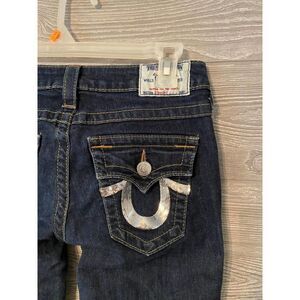 True religion women's size 27R blue jeans straight fit sequined pockets dark wash super cute.