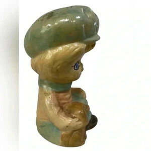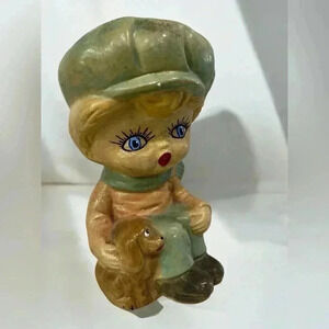 True vintage MCM kitsch Scandinavian pottery big eye boy and dog figurine
