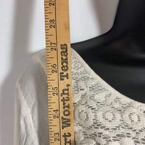 Excellent preloved condition 27". 100% rayon. trim is cotton lace detail ties at neck