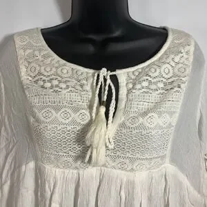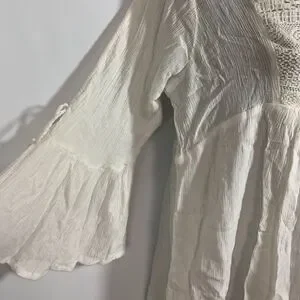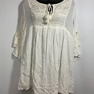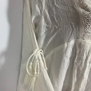 Please see pictures for all details - pics 4 and 5 3/4 bell ruffle sleeve, open sleeve with tie tassel