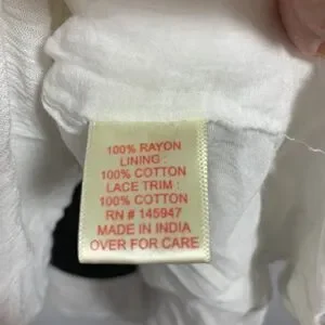 Excellent preloved condition 27". 100% rayon. trim is cotton lace detail ties at neck