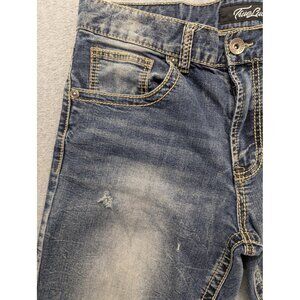 TrueLuck Jeans Mens 34x30 Blue Straight Leg Distressed Contrast Stitch Denim