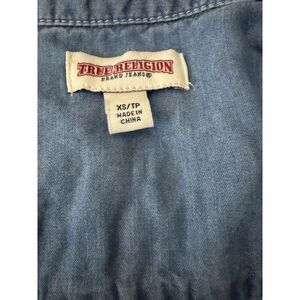 True Religion Chambray Shirt Dress Small Pearl Snap Long Sleeve Blue Jean Sz XS