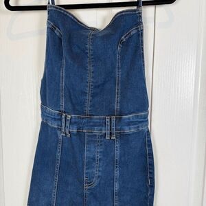 True Religion Fey Jumpsuit Denim Overalls Stretch Back Zipper Adj Straps Size 28. Back straps originally had ring hardware that attached the strap to the pants - they are now tied to the loop. Excellent condition. See photos for details and unstretched measurements. View my closet to add other items and bundle to save with one shipping fee!