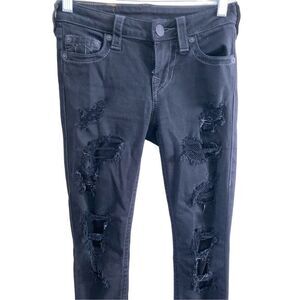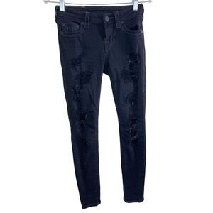 True Religion Fishnet Skinny Jeans Sexy Stretch Polyester Denim Charcoal Wash
