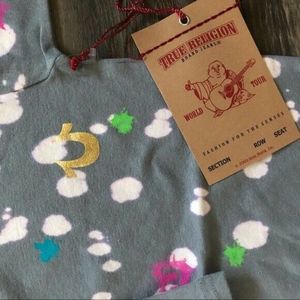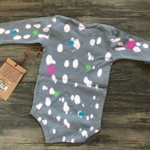 True Religion Gray Baby Splatter Paint One Piece Infant Bodysuit 6/12 Month New With Tags.