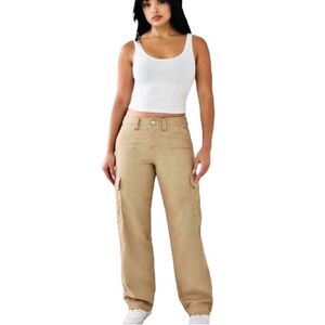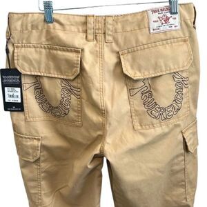 Experience the perfect blend of style and comfort with these True Religion cargo pants. Crafted in a versatile tan color, they offer a relaxed fit ideal for everyday wear. Embroidered back pocket