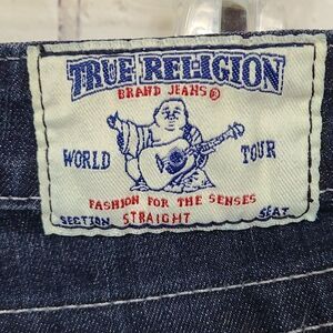 True Religion Women's Billie Straight Jean with Flap Mid-Rise Dark Blue Denim 27