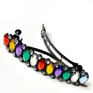 True Vintage Babely 1960’s / 1970’s Funky Rainbow Flower Power 3 Piece Beaded Crystal Hair Clip Bundle