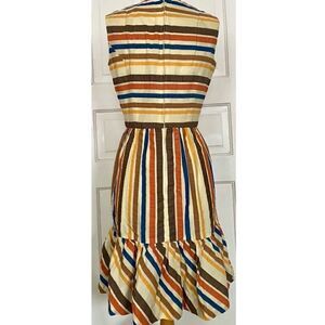 True Vintage 1950s Rainbow Stripe Ruffle Midi Sun Dress