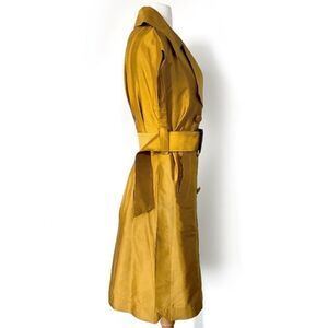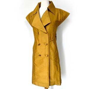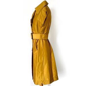 True Vintage Marigold 100% SILK Belted Collared Shirt Mini Dress