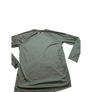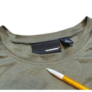 The Truewerk Shirt for men in size large is a performance-oriented long sleeve crewneck tee designed for workwear. Made from lightweight and breathable microfiber fabric, this solid green shirt features a crew neck and a regular fit. It is equipped with reflective, moisture-wicking, and quick-drying properties, making it suitable for outdoor activities. With a tagless design and stretch fabric, this shirt offers comfort and flexibility for all-day wear.