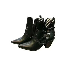Truffle Collection Black Studded Boots with Block Heel, Size 40 EUR, Pre-Owned