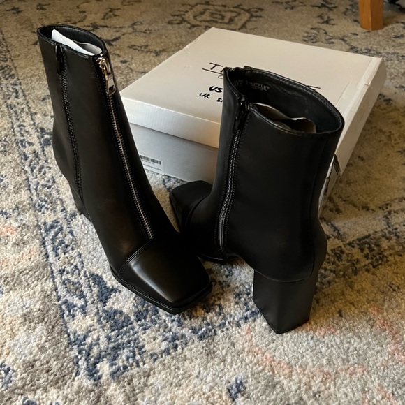 These boots are perfect for a night out or just to as everyday boots!! Contemporary zipper accents to contrast with the black leather!!