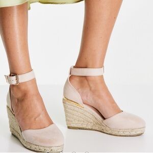 Truffle Collection Nude Wedge ankle strap espadrille Sandals shoes Sz 5