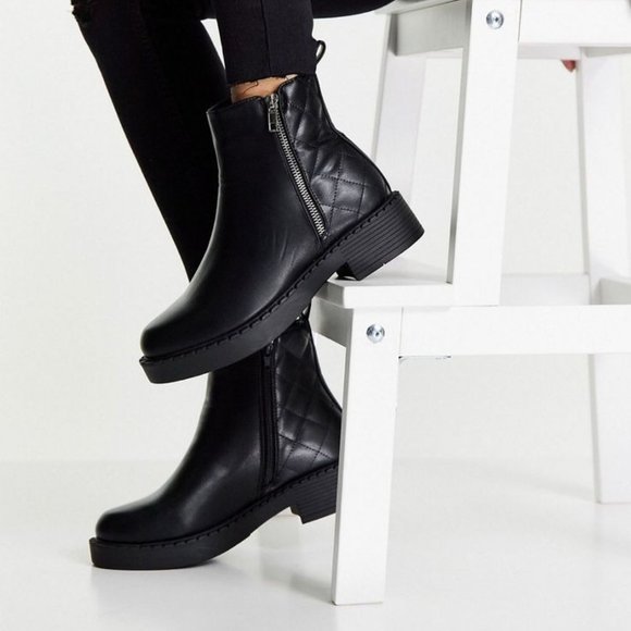 Truffle Collection Side Zip Ankle Boots With Quilting - Black - US 10