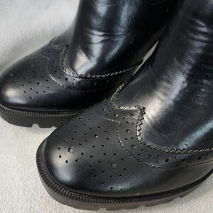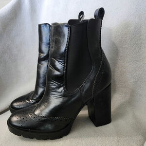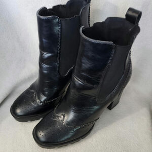 Truffle Collection size 7 Black Leather Boots Heels Booties Ankle Winter London
