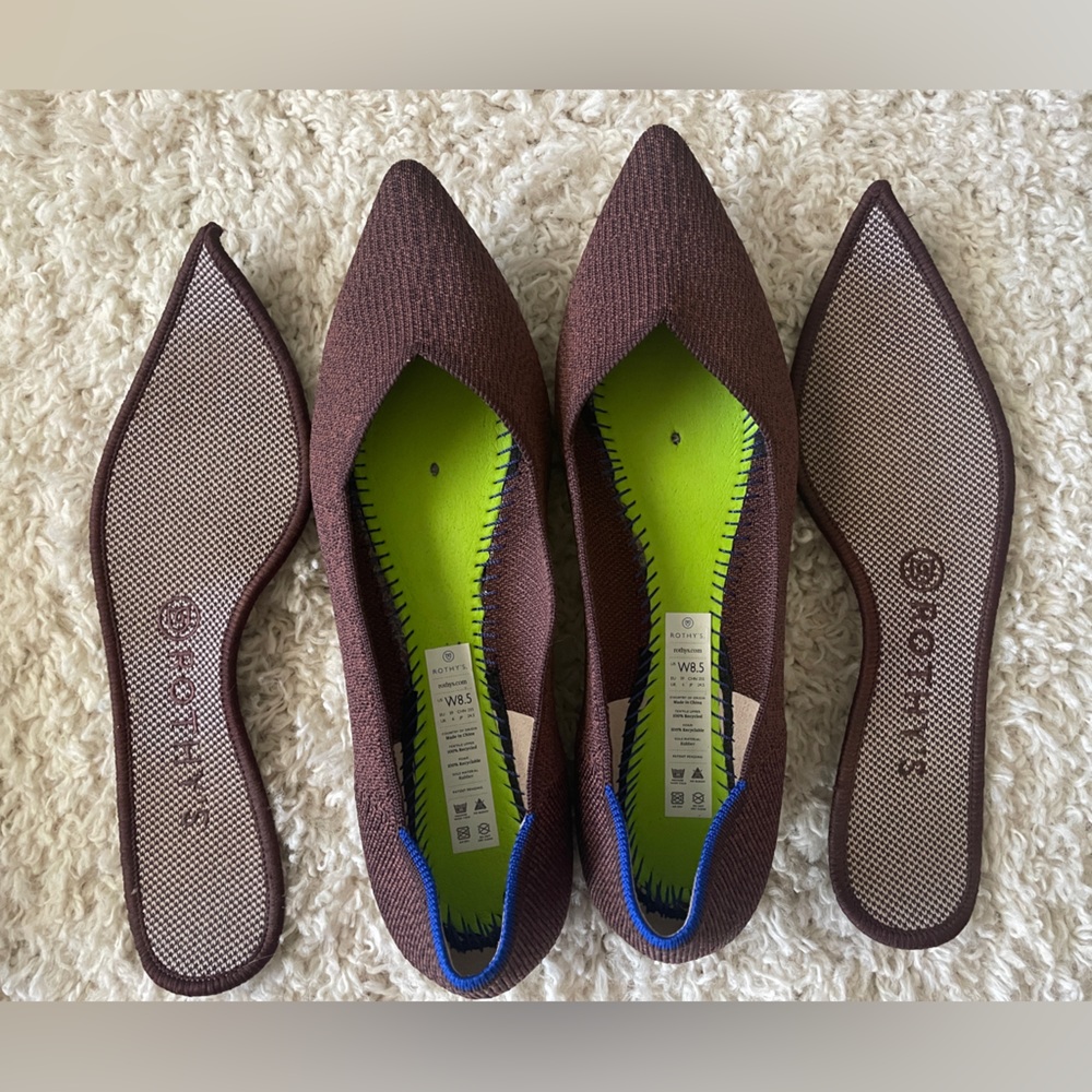 Like new truffle python Rothy’s points , size 8.5. No flaws that I can find. Only worn a few times.