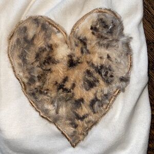 Darling dress with fur heart and collar, tan ribbon. So cute on the little one! Excellent condition. Unlined.
