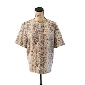 No size tag 21” armpit to armpit 24” long 100% polyester Color: tan, white, brown Made in USA