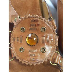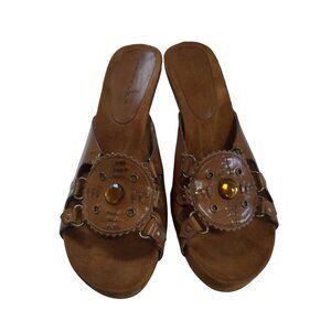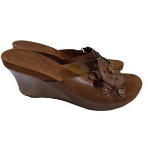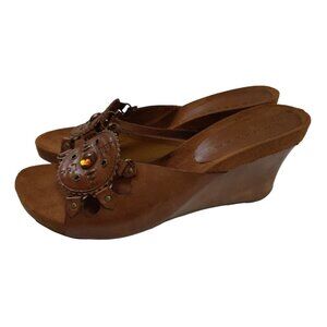Truflex Women's Light brown Leather wedge slide on sandals size 10M