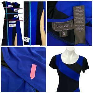 Trulli Dress Womens Small Maxi Blue Black Leg Slit Color Block Short Sleeve