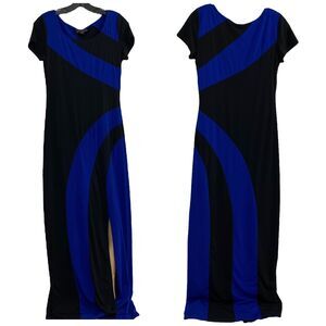 Trulli Dress Womens Small Maxi Blue Black Sexy Leg Slit Color Block Dinner Date